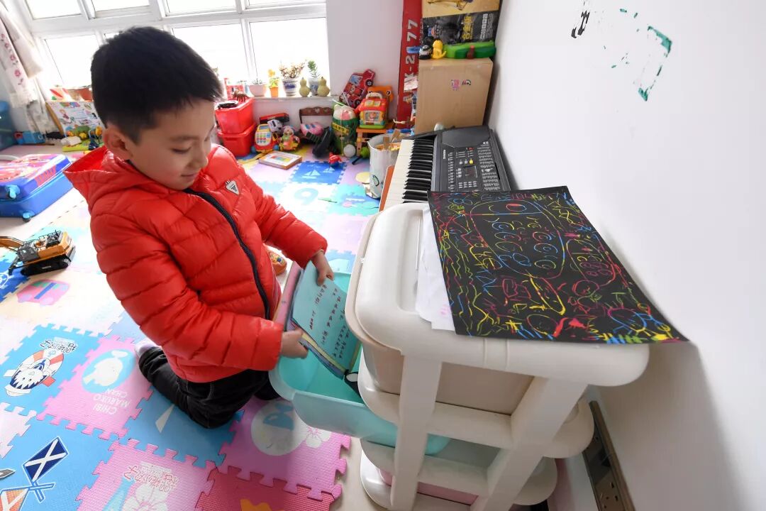 薛峰和儿子壮壮一起翻看、整理请假条。